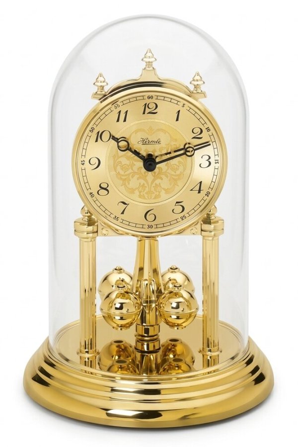 • Klok 84783-002300 is een jaarpendule stolpklok in een messing gekleurde uitvoering met een glazen stolp.