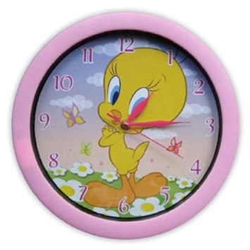 • Klok 18038331 is een kinderklok met een Tweety wijzerplaat, roze kunststof rand en roze wijzers.