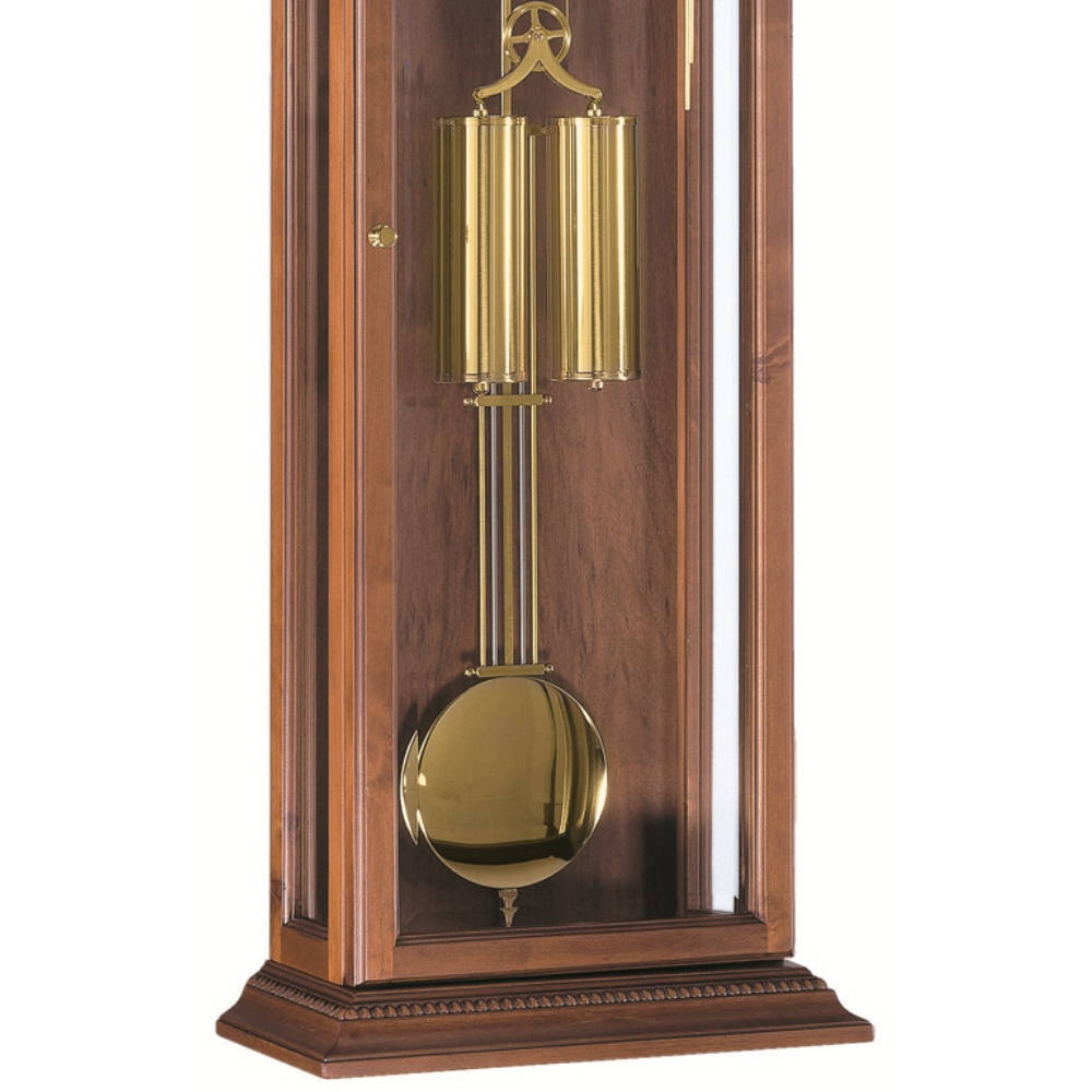 • Klok 70700-Q10351 is een snaarregulateur in een massieve antiek notenhouten uitvoering met een parelrand aan de boven- en onderkant.