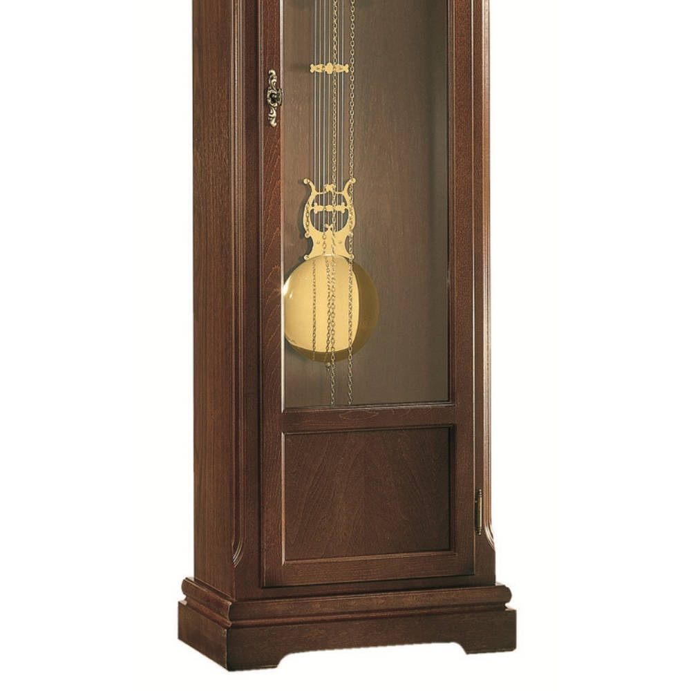 • Klok 01110-030451 is een staande klok van hoogwaardig noten gelakt hout met mineraalglas aan de voorkant.