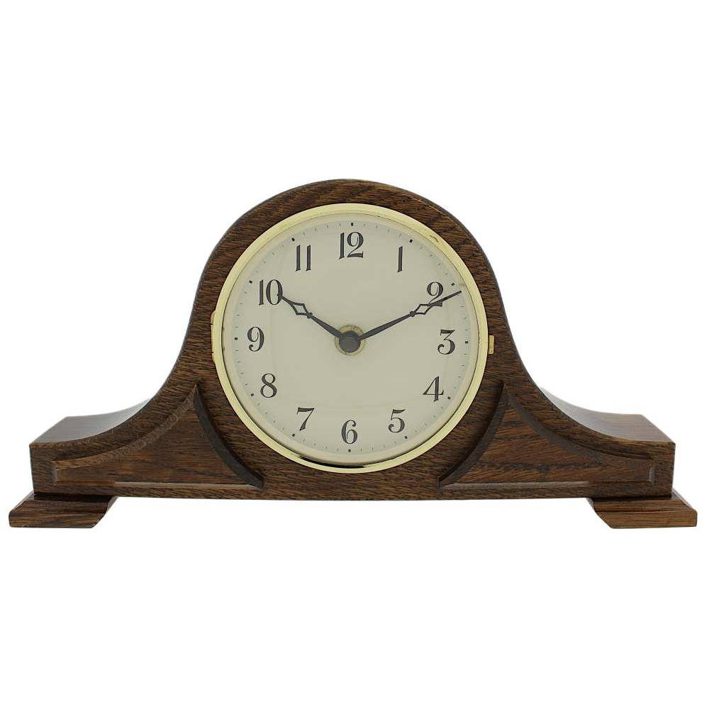 • Klok 120-230 is een tafelklok in een massief donker eikenhouten uitvoering met opgelegde ornamenten.