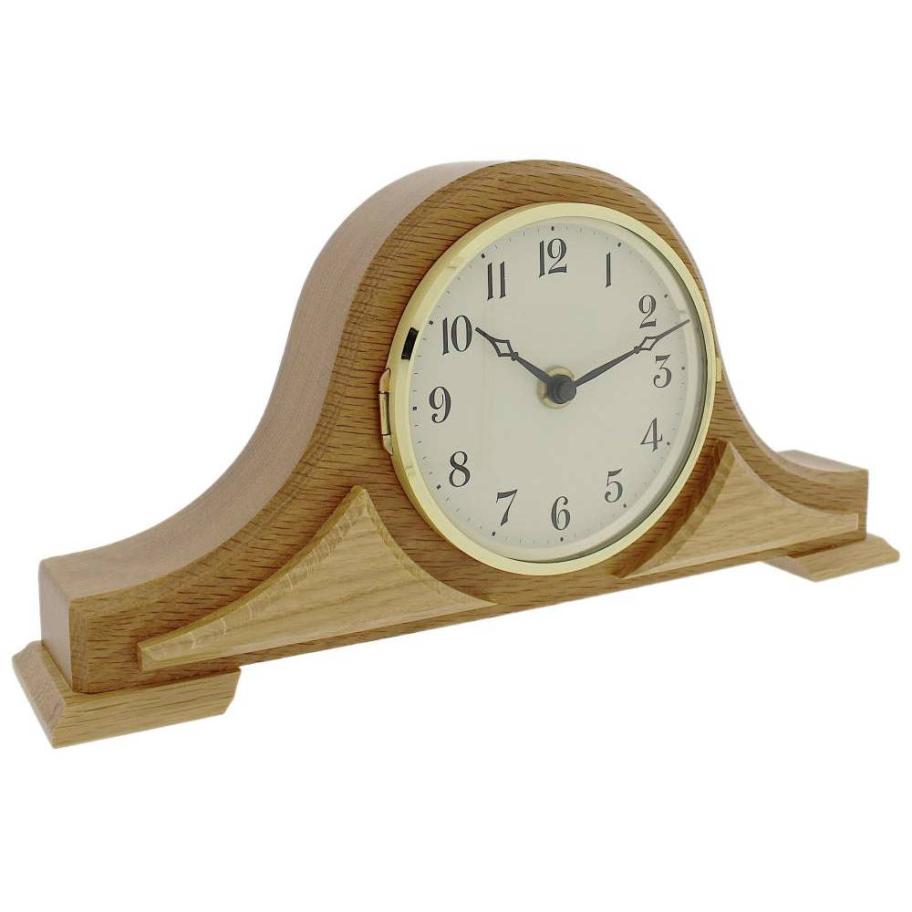 • Klok 120-250 is een tafelklok in een massief licht eikenhouten uitvoering met opgelegde ornamenten.