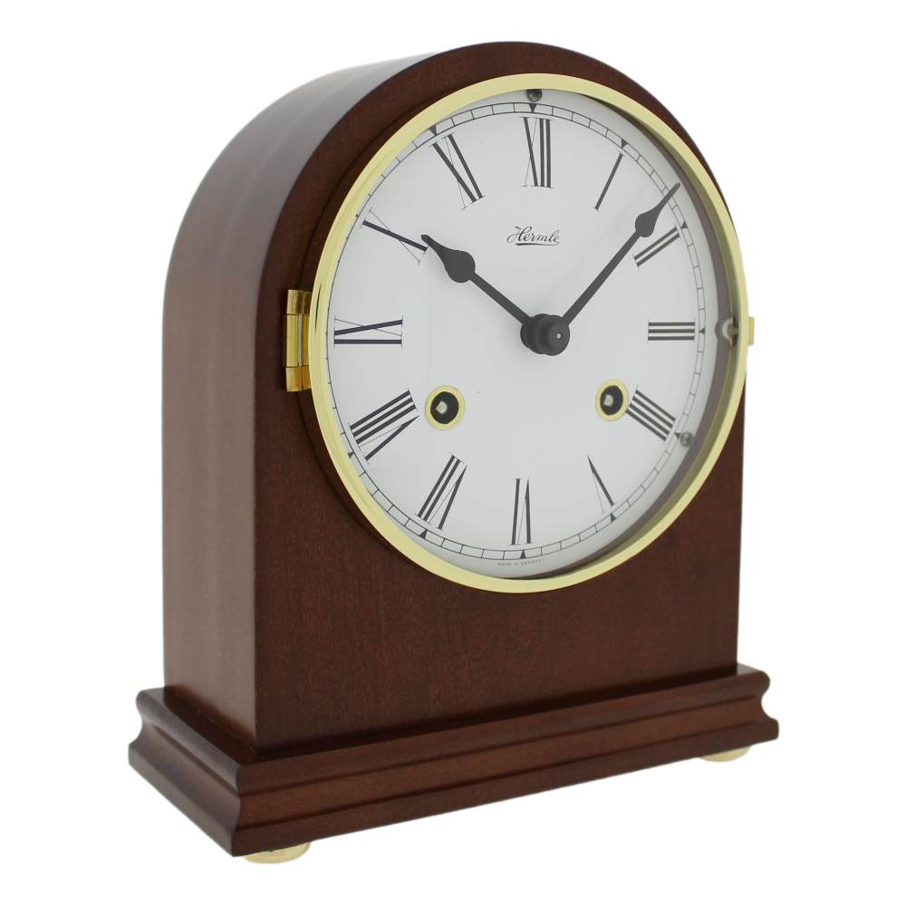 • Klok 22846-030130 is een tafelklok in een notenhouten uitvoering met messing pootjes.