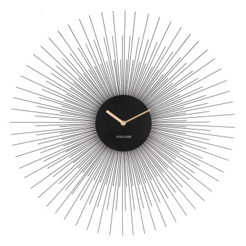 • Klok KA5818BK is een grote design wandklok van zwart gelakte metaalstaven met een mat gespoten zwarte wijzerplaat en goudkleurige wijzers.