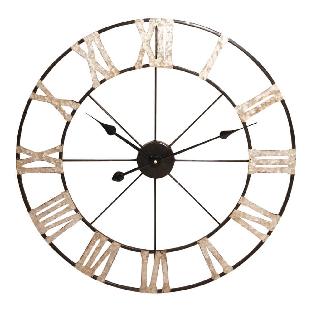 • Klok 18031056 is een grote antiek stijl wandklok van zwart gelakt metaal.