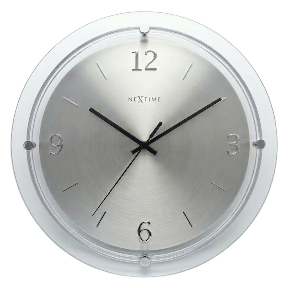 • Klok NE2850 is een wandklok met een matte aluminium wijzerplaat die is opgelegd met cijfers en strepen.