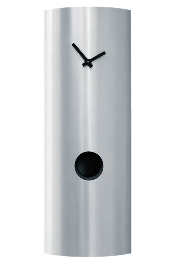 • Klok 100-8060 is een gebogen wandklok in een matte zilverkleurige RVS uitvoering met mat zwarte metalen wijzers.