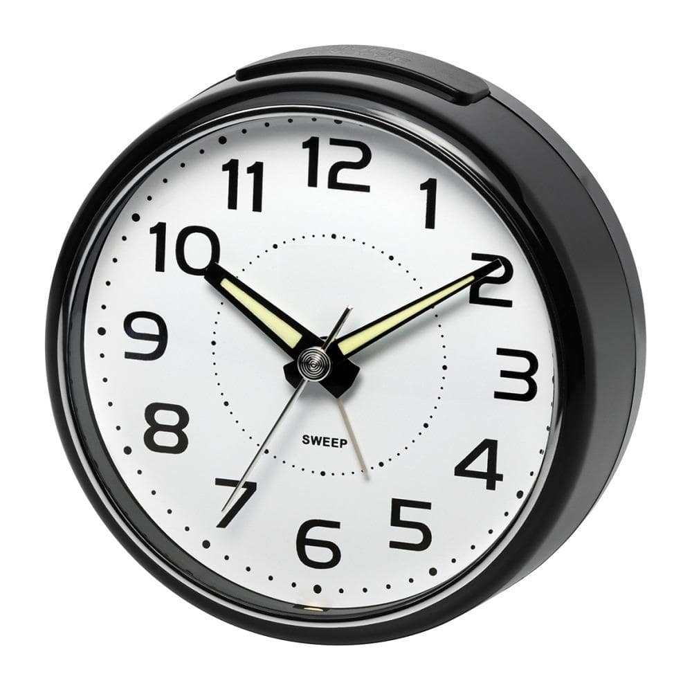 • Wekker 0603-7 is een zwarte kunststof wekker met een zilverkleurige ring rondom de wijzerplaat.